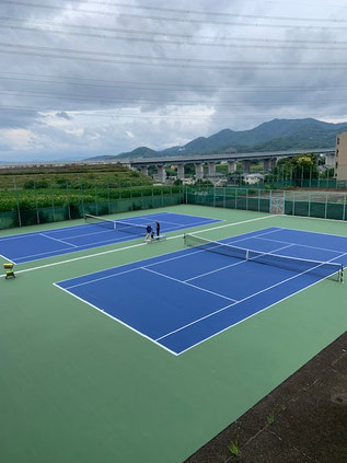 大学関係者、OB各位、男子テニス部関係者の皆様、この度コート改修が完成し、初打ちとなりました。長年の念願でありましたコートが整備され部員一同感激しております。