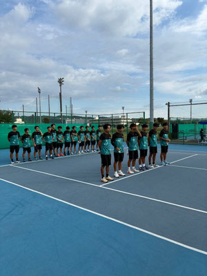 大学関係者、OB各位、男子テニス部関係者の皆様、この度コート改修が完成し、初打ちとなりました。長年の念願でありましたコートが整備され部員一同感激しております。
